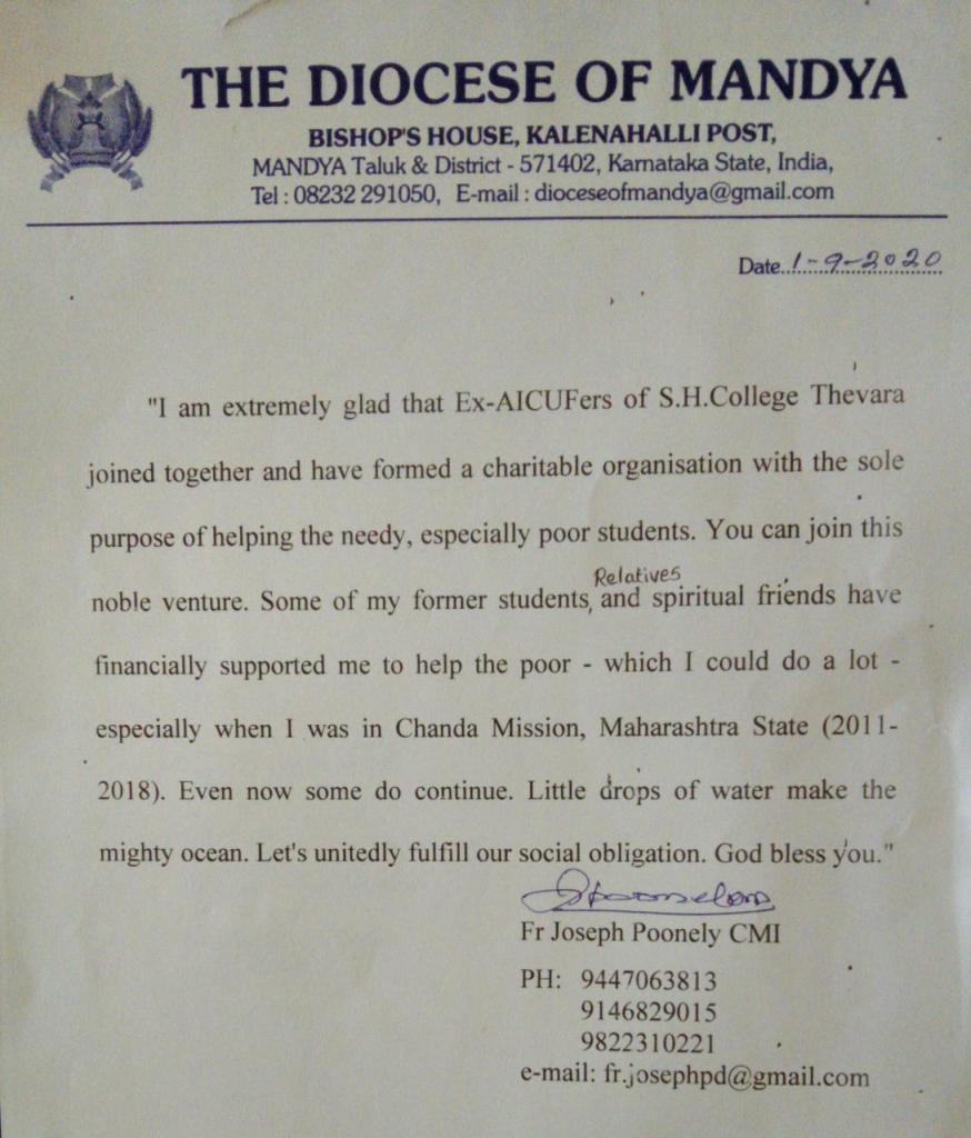 We are blessed to be spiritually guided by Rev. Fr. Joseph Poonely Ex-Principal SH College Thevara) who was Chaplain of AICUF Sacred Heart College, Thevara.
